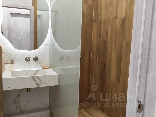 В санузле на полу и стенах керамогранит, инсталляция, раковина с тумбой, зеркальный шкаф с подсветкой, стиральная машина.