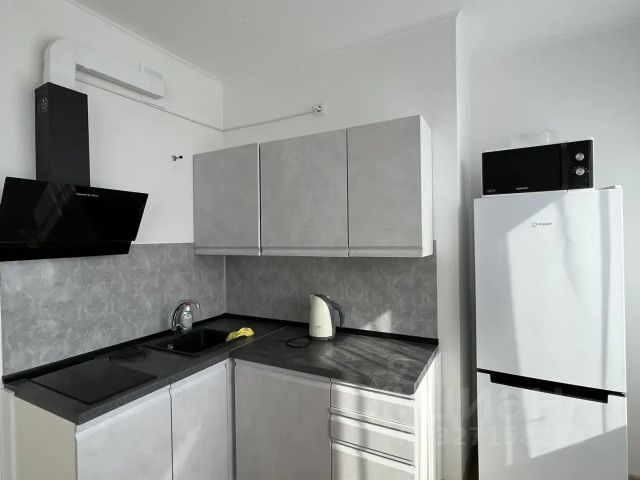 Кровать одноместная с ортопедическим матрасом, большой шкаф, кухонный гарнитур 1,6м со встроенной варочной панелью (с навесными шкафами), есть микроволновка.