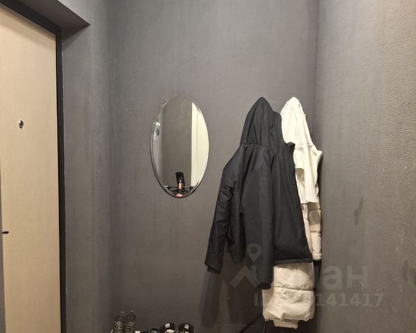В прихожей вместительный шкаф с зеркалом в полный рост.