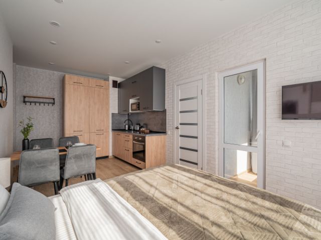 - Плита, микроволновая печь, чайник, холодильник, тостер.