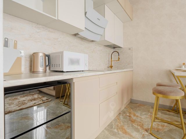 Зона кухни снабжена холодильником с морозильной камерой; электрической варочной панелью, простой в управлении; микроволновой печью для разогрева блюд и разморозки продуктов; электрическим чайником.