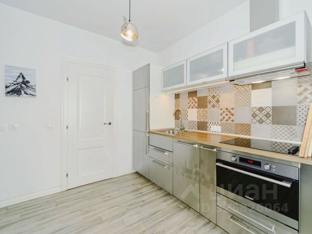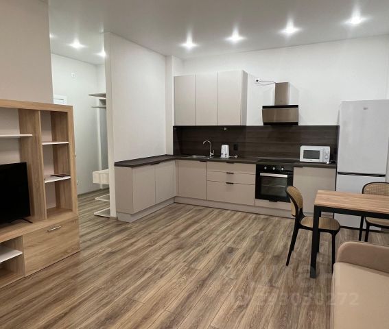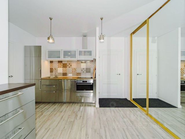 В квартире есть кухонный гарнитур с необходимой техникой.