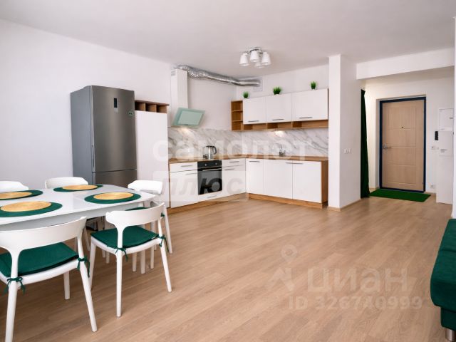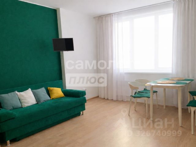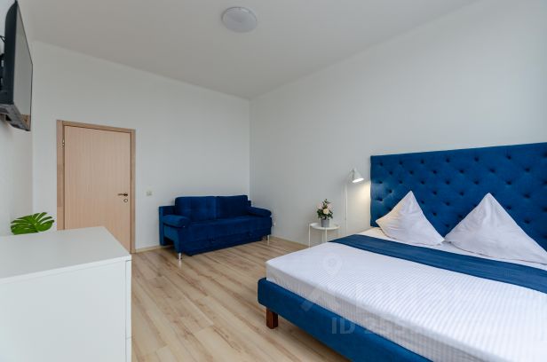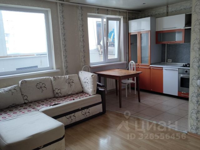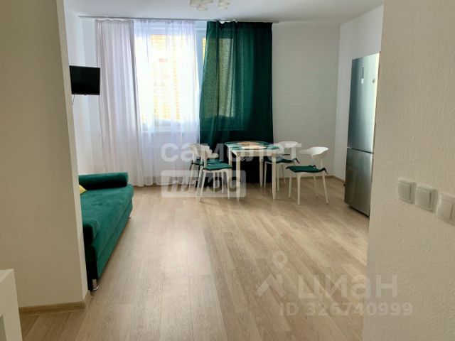 Студия оборудована всем необходимым. Кухонный гарнитур со всеми удобствами. Кровать с ортопедическим матрасом, раскладной диван, 2 шкафа для одежды и комод. Техника, текстиль и посуда. Лоджия с прекрасным видом.