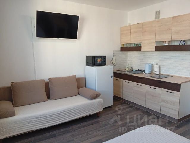 Супер уютная студия в микрорайоне солнечный. Располагается в новом доме с доступной средой, удобной и большой детской площадкой. Монетка, галамарт, жизнь март, озон, булочная прямо в доме. В шаговой доступности поль бейкери, кофейня, сушкоф, пиццерия и другие магазины. В районе есть буквально все-это маленький город. До остановки общественного транспорта минута ходьбы. До центра города 25 минут езды.