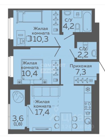 Предлагается в долгосрочную аренду светлая 2-комнатная студия 17 с отдельной гардеробной комнатой из спальни в арендном Доме "Южные Кварталы" от ДОМ.РФ.