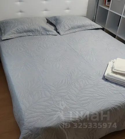 * Роскошная двуспальная кровать с ортопедическим матрасом, заправлена чистым бельем.