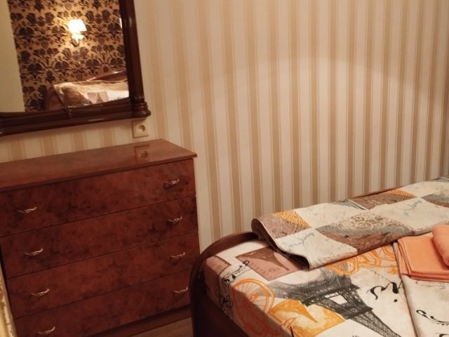 Отличная отдельная, 3 комнатная квартира. Стандарт. С ремонтом, мебелью и бытовой техникой. Новая мебель. Диван, кровать двуспальная, кровати односпальные, телевизор, холодильник, стиральная машина, микроволновка, wi-fi. Рядом с квартирой находиться парк, магазины торговые центры, автостоянка, кафе, и ресторан.