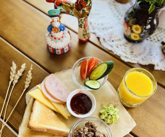 Парк-Отель Сорока - первый на Урале семейный тематический парк, посвящённый традиционной уральской народной культуре, сказам Бажова и русской сказке. На извилистых дорожках Парка гостей встречают сказочные герои, они загадывают загадки и рассказывают истории. Баба Яга и Леший играют с детьми и взрослыми в традиционные активные игры, Данила-Мастер учит делать сувениры из самоцветов и показывает спектакль по сказам Бажова. Хозяйка Медной горы ждет гостей в пещере и устраивает им испытания. А хозяйка Подворья бабушки Нины встречает чайком горячим, да разговорами душевными! В Теремном дворце Урал Мороза зимний волшебник и его помощники Лисичка, Зайка и Бобер проводят для ребят веселые новогодние ёлки. Идея Парк-Отель Сорока - сохранить историю и культуру Урала, возродить его традиции, помочь жителям нашего края и туристам прикоснуться к уральским корням и истокам, познакомить с позитивными туристскими брендами Свердловской области. Мы популяризуем в Парке семейные ценности и для этого создали более 20 различных программ для детского и семейного отдыха. Приезжайте в гости! Встретим с теплом уральских традиций и широтой русской души! Традиционный аутентичный гостевой дом. Деревянный туалет находится на территории у дома, огороженной заборчиком. Внутри дома: умывальник с теплой водой, двуспальная кровать (2 спальных места), раскладной диван (2 спальных места), раскладной диван (1 спальное место), чайник, микроволновка, холодильник, телевизор. Отсутствие душевой кабины. Внимание: дополнительно можно разместить 3 человека - диван и софа!