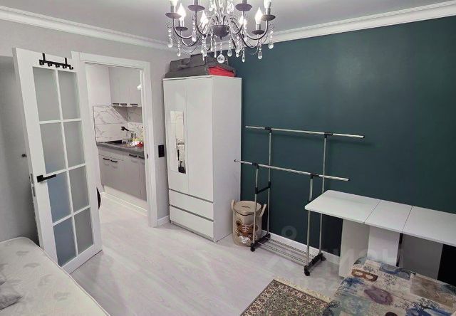 • комната укомплектована мебелью (шкаф, системы хранения, диван);