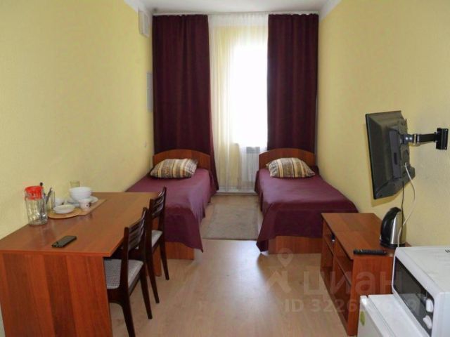 В номере: три односпальные кровати, шкаф, письменный стол, центральное отопление, набор постельного белья, телевизор, кабельное телевидение, микроволновая печь, электрочайник, холодильник.