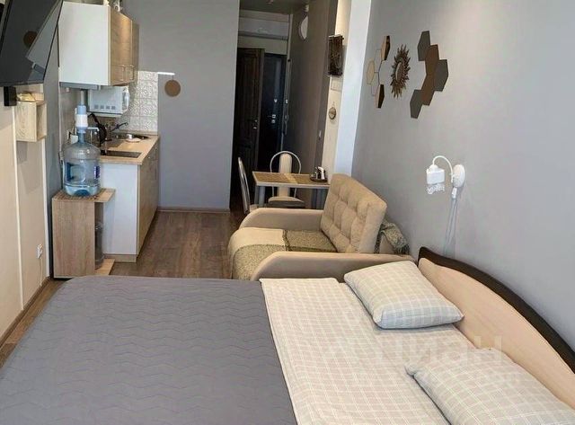 В студиях есть мини-кухня, можно приготовить поесть, со всей необходимой техникой и посудой, стиральная машинка, гладильные принадлежности.