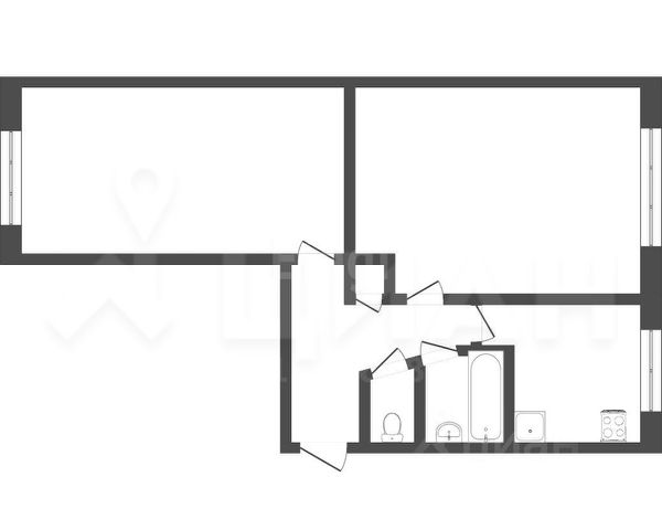 - Кабинет: диван, стул письменный, выход на маленькую лоджию (Запад)