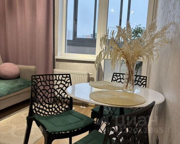 Квартира полностью оборудована всей необходимой мебелью и бытовой техникой, включая кухню с полным набором посуды и столовой зоны.