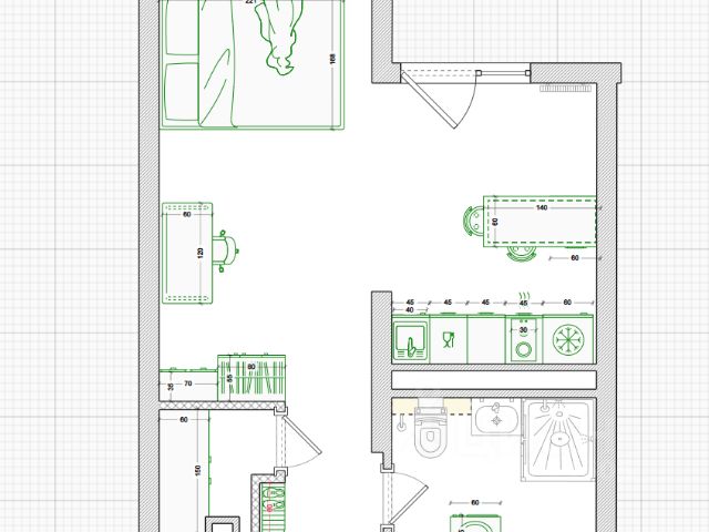 Гостиная. Два больших шкафа-купе размером 160*60 и 180*60 для всех ваших вещей. Комод для хранения повседневных вещей, ТВ-зона. Раскладной двухместный диван с ортопедическим матрасом. Стол, который можно использовать и как обеденный для приема гостей, так и письменный.