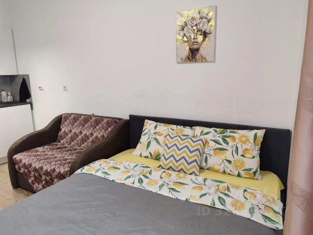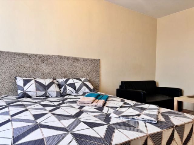 Уютная студия со всем необходимым для проживания: двуспальная кровать, кресло-кровать, диван. Вай фай, стол, стулья, кухонный гарнитур, плита, эл. чайник, посуда. Всегда застеленная чистым постельным бельём, полотенца, туалетная бумага, жидкое мыло. Квартира рассчитана на проживание 1-2-3х человек. Рядом продуктовый магазин. При проживании победе 10 дней скидка. Действует правило расчетного часа, заезд после 14:00, выезд до 12:00. Ночное заселение (после 12 часов ночи по предварительной договоренности). Квартира не сдается несовершеннолетним (18+), а также для проведения мероприятий