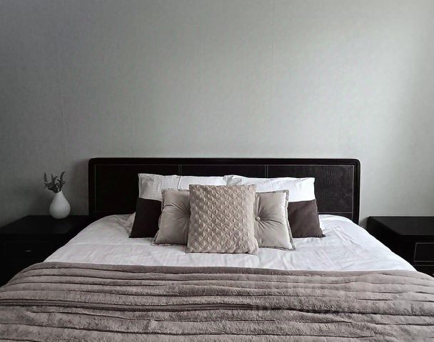 * Роскошная двуспальная кровать с ортопедическим матрасом, заправлена чистым бельем.