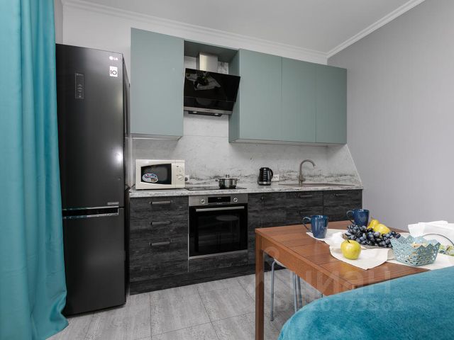 Кухня в квартире небольшая, но вполне функциональная. Она оснащена всем необходимым для приготовления пищи: электрической плитой, микроволновой печью, холодильником, чайником, а также посудой для готовки и приёма пищи. В холодильнике всегда есть место для ваших продуктов, а на полках — различные приправы и масла. Если вы предпочитаете не готовить, в окрестностях можно найти множество кафе и ресторанов, где подают вкусные блюда на любой вкус.