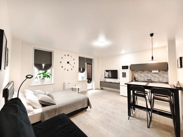 Водонагреватель, Удобная электроплита, Чистая Микроволновка, Вместительный Холодильник, Стиральная Машина автомат и сушилка для белья и одежды, Мощный фен, утюг и гладильная доска