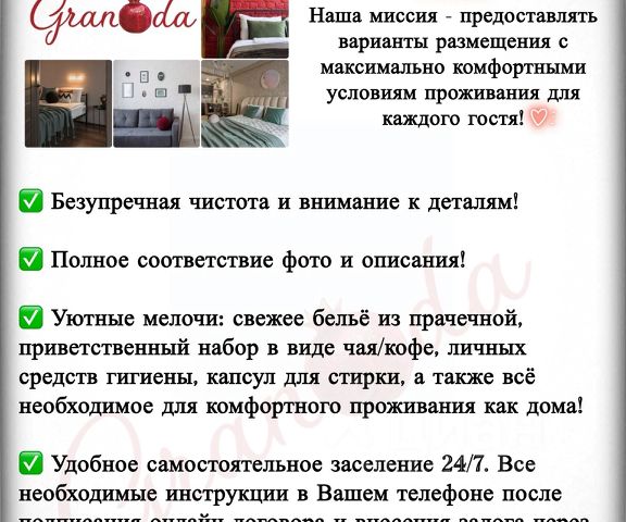 * ЗАПРЕЩЕНО: проживание с животными, курение табачных изделий (вейпов, электронных сигарет, IQOS, кальянов и т.д.), проведение шумных мероприятий, вечеринок и др.