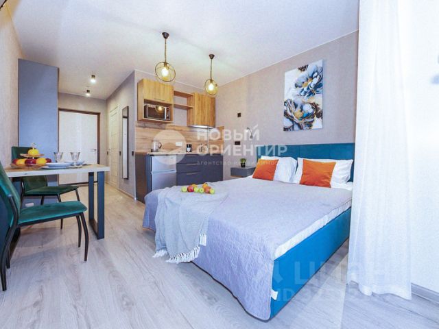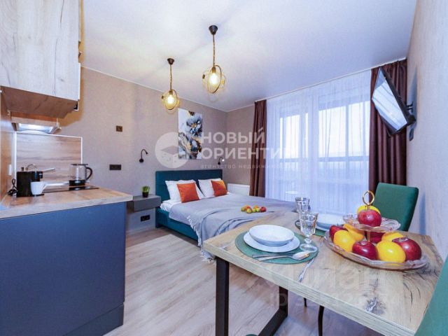 Студий с дизайнерским ремонтом на 18 этаже нового комплекса с живописным видом на парк Маяковского В квартире есть всё необходимое для комфортного проживания: - Духовой шкаф, микроволновка, электрический чайник, фен - Высокоскоростной wi-fi, удобное рабочее место - Двуспальная кровать и раскладной диван - Вместительные шкафы Больше подробностей на фото и в видео До метро 18 мин пешком. Удобное расположение для поездки в центр, в аквапарк, в аэропорт, ЭКСПО. Большая открытая парковка. В комплексе есть магазин Магнит Курение в квартире и заезд с животными запрещены. Залог за выплачивается в первые 2 месяца по 0.5 месячной стоимости аренды и возвращается при выселении. Все коммунальные платежи включены в стоимость проживания.