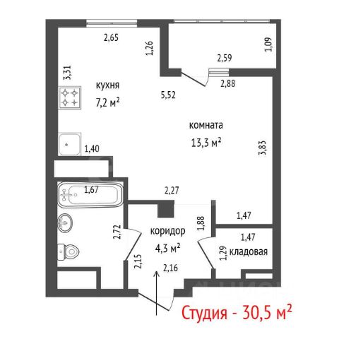 От года, комм. платежи не включены, комиссия 50%, залог 30 000 ₽