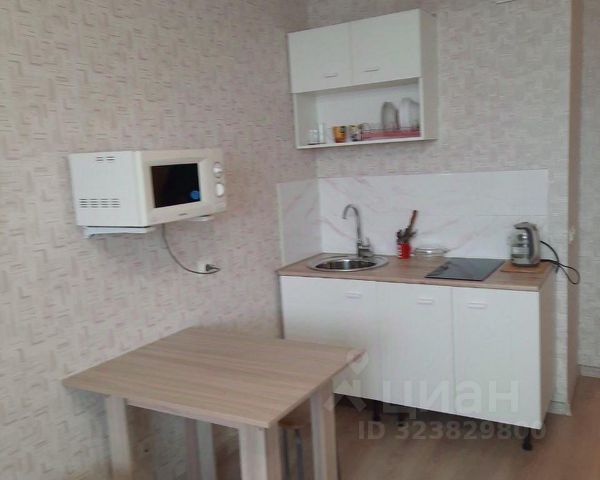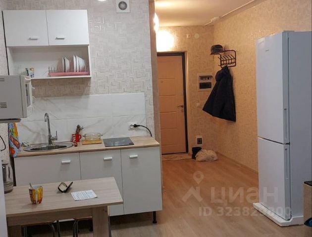 В комнате кухонный гарнитур ( индукционная плита, вытяжка) , диван, телевизор,холодильник, новая стиральная машина, обеденный стол, 2 стула, где удобно расположиться с ноутбуком.