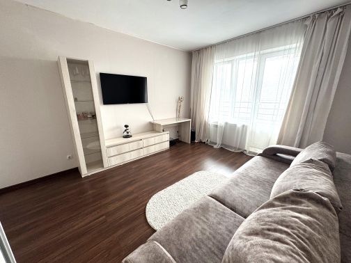 Уникальное предложение: сдается просторная двухкомнатная квартира с дизайнерским решением в новом доме. Без комиссии! Квартира полностью укомплектована для комфортного проживания. На стильной кухне установлены встроенные холодильник, морозильная камера, духовая печь, вытяжка, посудомоечная машина, варочная панель, вместительные и продуманные шкафы для хранения. Полный комплект посуды, электрический чайник, кофеварка. Эстетичная столовая группа для красивых завтраков. Уютная спальня с двуспальной кроватью 160*200см, комодом и шкафом для личных вещей. Гостинная зонирована: отдых с книгой в своей библиотеке, или интересное кино на комфортном, раскладывающемся диване - решать Вам. Проведен скоростной Wi- Fi, телевизор Smart TV, установлен кондиционер. С гостинной выход на лоджию. Два санузла: один небольшой гостевой с умывальником, второй с ванной и тропическим душем, зеркало с подсветкой создаст уютную атмосферу и задаст настроение. В квартире установлена стиральная машина, имеется фен, утюг, гладильная доска. Квартира очень светлая, расширенные оконные проемы, окна во двор. На территории ЖК расположены сетевые магазины, кофейни, пекарни, аптеки, салоны красоты. Хорошо оборудованная детская площадка для всех возрастов, теннисный стол, красивый сквер с малыми архитектурными формами. Условия проживания: Без комиссии; Постоянное проживание до 4 человек; БЕЗ ЖИВОТНЫХ (рыбок можно); Аренда за месяц вперед; Залог 30000руб. с возвратом при выезде; Отдельно производятся платежи за КУ (примерно 5000руб/мес.)