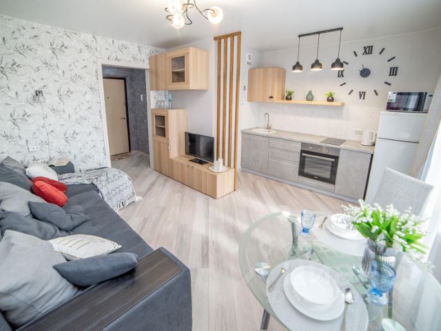 Сдаются студия с дизайнерским ремонтом, полностью укомплектована техникой и мебелью. В квартире сделан свежий ремонт. Новый дом. Рядом есть вся необходимая инфраструктура: школа, детские сады, магазины До центра 15 минут на машине. Звоните, отвечу на все ваши вопросы.