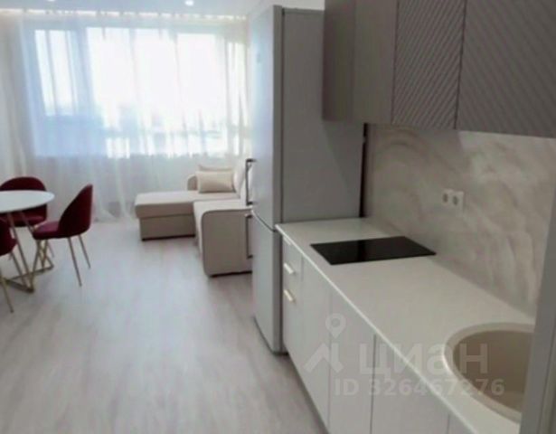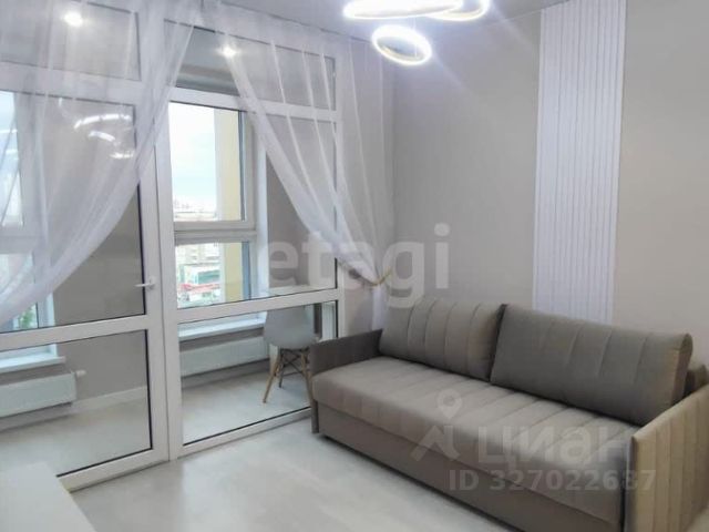 Сдается в аренду квартира-студия на 31 этаже, с видом на центр города. Придомовая территория комплекса закрыта от машин. Рядом с домом: остановка транспорта (трамваи, автобусы), удобная транспортная развязка (как в центр города, так и на объездную) , продуктовые магазины, аптеки, ТРЦ Радуга Парк с парком для простых прогулок и развлечений, кафе и рестораны, частные и муниципальные медицинские учреждения. В квартире сделан качественный ремонт, санузел в плитке, кухонный гарнитур с раковиной и варочной поверхность, стиральная машина, пенал в ванной, холодильник, микроволновка, диван, шкаф, кухонный стол, кухонные стулья. В доме 4 лифта (2 грузовых и 2 пассажирских), два лифта спускаются в подземный паркинг, есть колясочная, пост охраны, подземная парковка, благоустроенный и безопасный, с видеонаблюдением двор со спортивными снарядами и площадками для детей. Квартира сдается без комиссии агенту . 33 000 + КУ, залог 33 000 руб. (можно поделить на 2 раза). Сдаем квартиру без животных. Звоните, записывайтесь на просмотр!