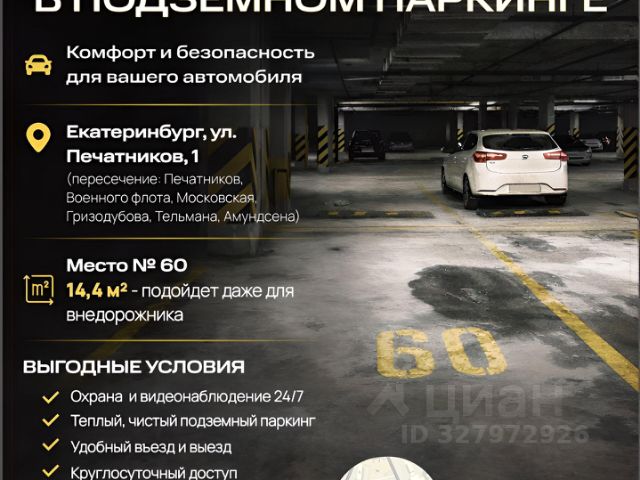 Сдаётся удобное машиноместо по адресу Печатников 1 в долгосрочную аренду Место 60 | 14,4 м² — достаточно места даже для внедорожника! Достоинства: Надёжная охрана 24/7 — видеонаблюдение и контроль доступа Тёплый и чистый подземный паркинг Удобный въезд и выезд — никаких тесных поворотов и скоплений машин (ВХОД И ВЫХОД ИЗ ПАРКИНГА В ПРЕДЕЛАХ 1 МИНУТЫ) не нужно долго идти до входа/выхода Круглосуточный доступ — приезжайте и уезжайте в любое время Идеальное расположение — рядом с транспортными развязками, магазинами и центром города Сзади машиноместа имеется свободное пространство для размещения ваших вещей ( шин, дисков и тд.) Отлично подойдёт для тех, кто ценит сво время и комфорт. Арендная плата — 15000 ₽ в месяц (коммунальные услуги включены в стоимость) Безопасность. Удобство. Покой. Ваш автомобиль скажет вам спасибо. Пишите в личные сообщения подробностях! Или звоните по номеру телефона Снять машиноместо в районе Ленинский в городе Екатеринбург.