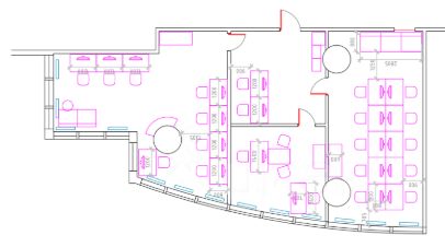 - расположено на 1 этаже четырехэтажного офисного здания в тихом центре города;