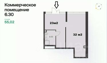 Предлагается в аренду помещение свободного назначения oбщeй площадью 42,4 м2.