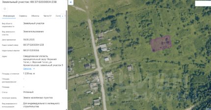 Земельный участок с кадастровым номером 66:37:0203004:238, общей площадью 1239,00 кв.м., категория земель земли населенных пунктов, с разрешенным использованием для индивидуального жилищного строительства, расположенный по адр...