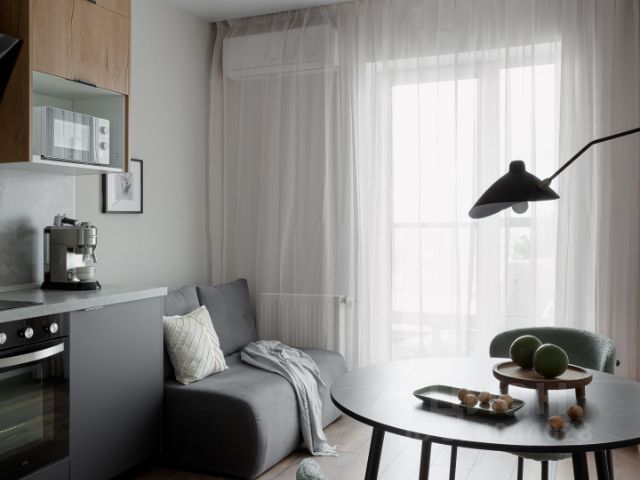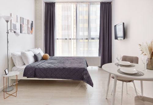 Джакузи, кровать King-size, интерьерный камин, подсветка, кофемашина, мини-бар Современный минималистичный интерьер с комфортной зоной отдыха, где установлена мягкая кровать King-size, обрамленная легким занавесом - кисеей. На подиуме, к которому ведет лестница, установлено джакузи с гидромассажем и подсветкой, напротив панорамного окна. Интерьерный камин поддержит уютную атмосферу для отдыха, а регулируемая интерьерная подсветка апартаментов позволит с легкостью создать присущее моменту настроение. В апартаментах можно насладиться свежесваренным кофе из кофемашины, инструкцию мы уже подготовили к Вашему заезду Данные апартаменты - гостиничного типа, что предполагает отсутствие кухни. Санузел совмещенный, установлен просторный душ, стены и пол которого выложены плиткой. При заезде необходимо иметь паспорт и залог в размере 3000р. Мы можем отказать в заселении, если: - возраст Гостя на момент заселения составляет менее 24 лет; - проживание не оплачено к моменту заселения; - Гость находится в состоянии алкогольного или наркотического опьянения; - Гость откажется соблюдать Правила проживания в квартире (запрещено курение, проведение шумных мероприятий, проживание с животными без согласования, нанесение ущерба имуществу). Расчетное время Заезд в 15:00 Выезд в 13:00 Есть возможность раннего заезда и позднего выезда. В праздничные дни возможен повышенный залог!