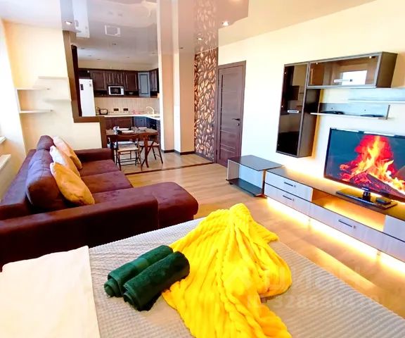 Уютная студия со всем необходимым для проживания: двуспальная кровать, кресло-кровать, диван. Вай фай, стол, стулья, кухонный гарнитур, плита, эл. чайник, посуда. Всегда застеленная чистым постельным бельём, полотенца, туалетная бумага, жидкое мыло. Квартира рассчитана на проживание 1-2-3х человек. Рядом продуктовый магазин. При проживании победе 10 дней скидка. Действует правило расчетного часа, заезд после 14:00, выезд до 12:00. Ночное заселение (после 12 часов ночи по предварительной договоренности). Квартира не сдается несовершеннолетним (18+), а также для проведения мероприятий