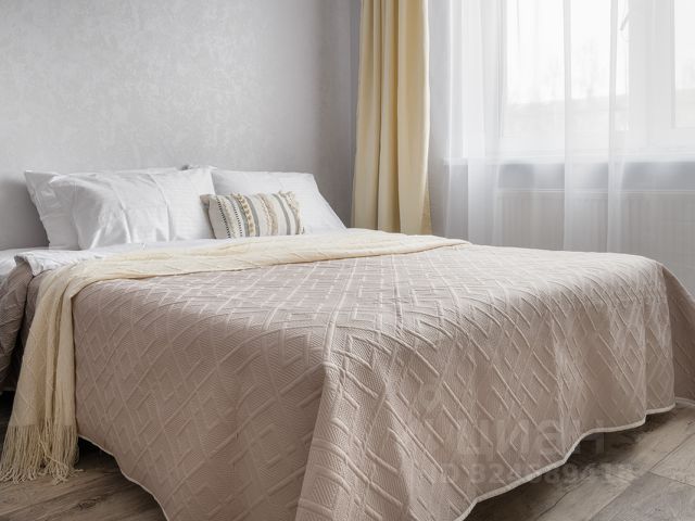 * Роскошная двуспальная кровать с ортопедическим матрасом, заправлена чистым бельем.